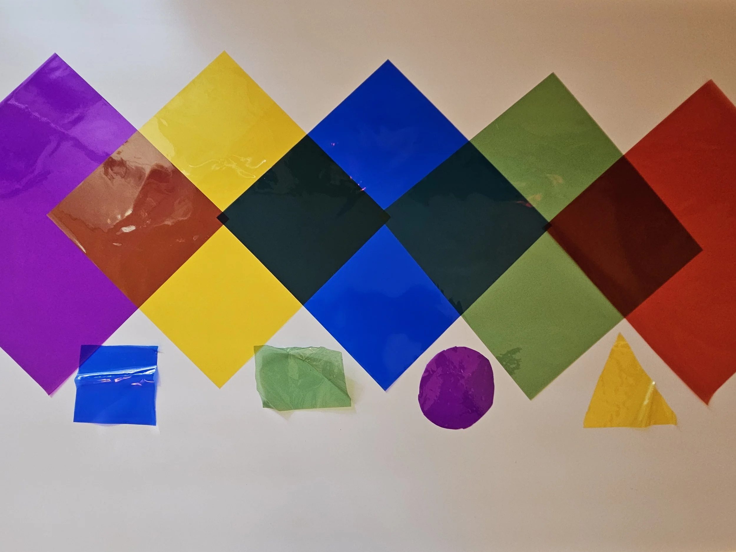 You begin the activity by asking the child to look around the room and describe some of the things they see in it. Next you’ll introduce a variety of colored cellophane sheets. These can be small enough to cut a shape out of that can cover at least one eye.